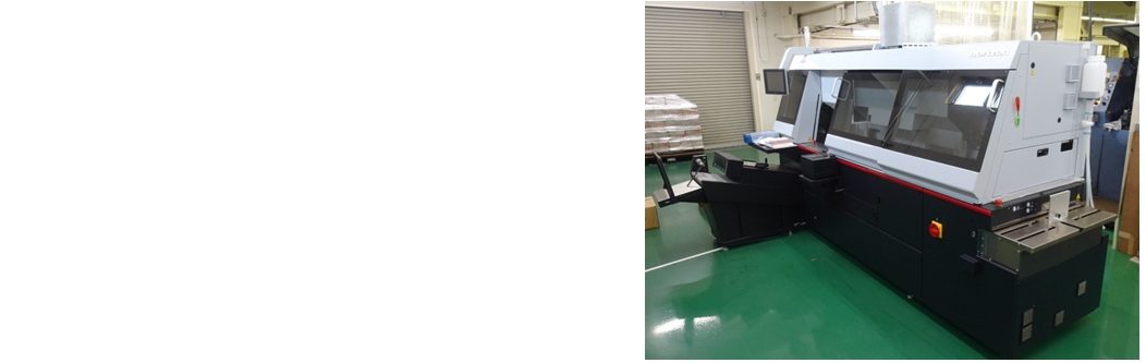 製本ラインには、画像式乱丁防止機、飛出検知機、金属混入検査機、表紙絵柄検査機、重量検査機を備えており、最高10,000部/hにおよぶ高速生産時にも、極めて僅少な不良率を実現しております。
